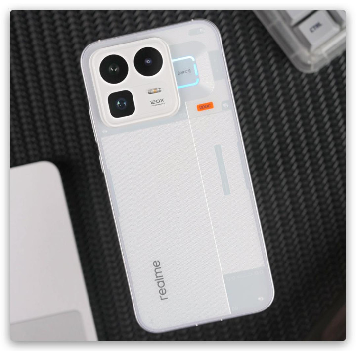 真我这次在设置上也是玩得相当大胆。机甲灰、赛博紫、起源白三款配色,全系采用透明后盖,内部精密纹理清晰可见。