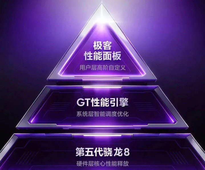 配合LPDDR5X内存和UFS 4.1闪存,这不仅快,而且稳,更别提还内置了GT性能引擎和极客性能面板——前者能实现芯片级超帧渲染与先知能效调度,后者则允许用户手动调节CPU/GPU频率、触控响应、温控策略等;