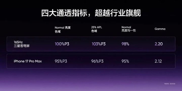 屏幕方面,全球首发苍穹屏,绝非话术,165Hz只是起点,还是块6.78英寸三星直屏。