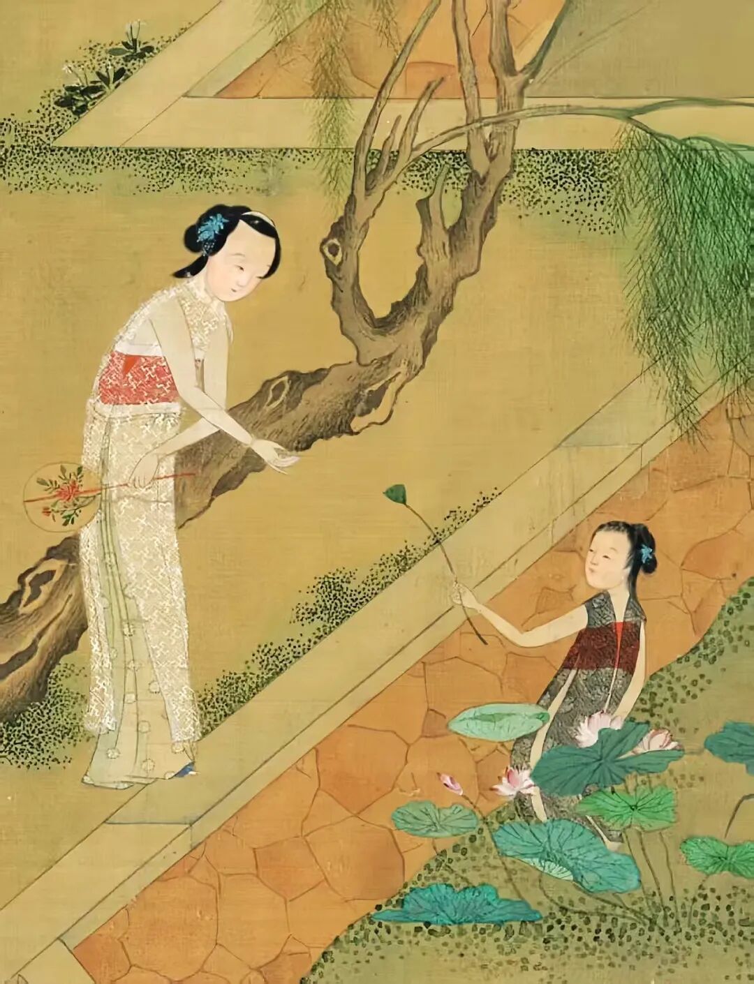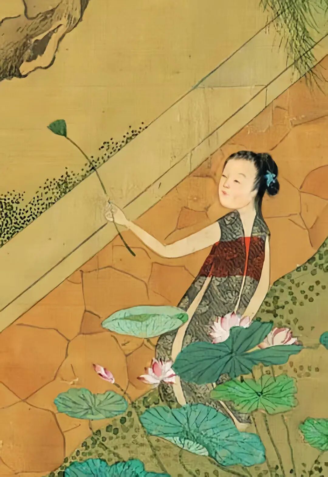 仇英这哥们儿,那可是明代绘画界的“顶流”,和沈周、文徵明、唐寅并称“明四家”。他画的《摘莲图卷》,把江南水乡的夏日风情展现得淋漓尽致。画里那些女子,穿着短袖,在荷塘里穿梭,那叫一个灵动!