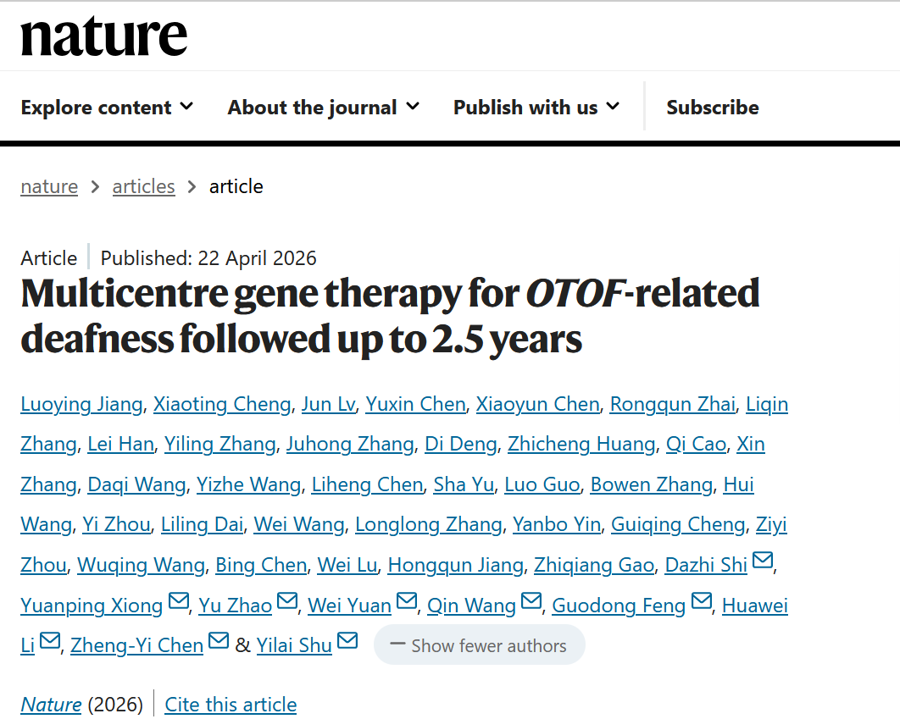 4月22日,复旦大学附属眼耳鼻喉科医院舒易来教授带领团队,联合全国多家医院开展的先天性耳聋基因治疗研究,登上了国际顶级期刊《自然》(Nature),这项研究随访时间长达2.5年,不仅帮助众多聋人恢复听力,更找到了判断治疗效果的关键方法,引领了全球耳聋治疗的新方向。