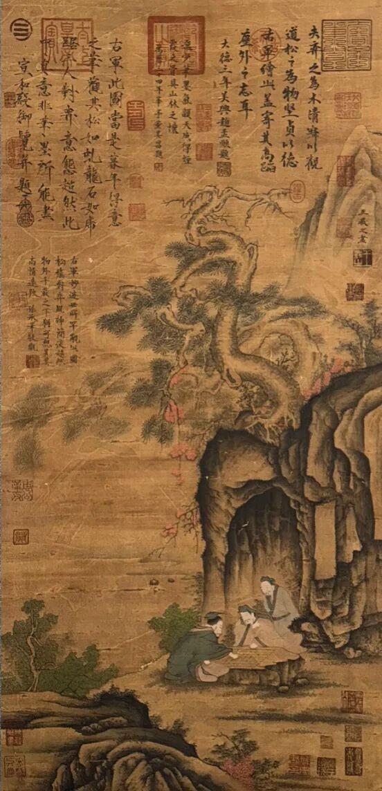 最逗的是,这画里还藏着王羲之的小心思,他借这俩下棋的老头儿,好像在跟咱们说:人生就像这盘棋,得有谋有略,不能光凭一股子蛮劲儿。